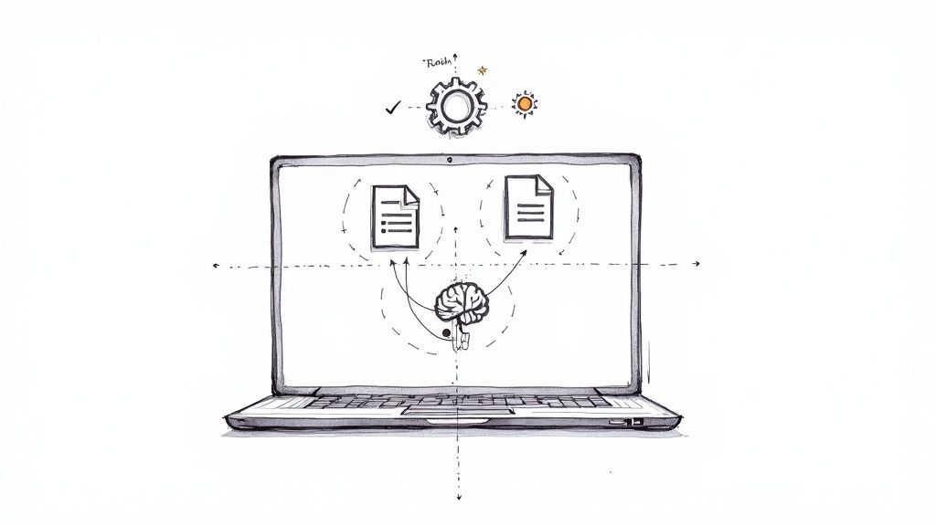 Accounts payable automation software acts like a super-efficient assistant for your finance team. It uses technology like Optical Character Recognition (OCR) to instantly read and pull key data—like invoice numbers, quantities, and totals—from digital documents. That means no more tedious, error-prone manual data entry.