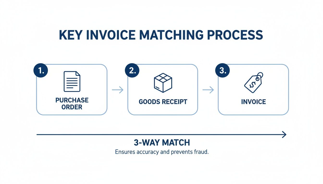 Here's the bottom line: 3-way matching is a core accounting practice that validates a supplier's invoice before you pay it. It works by checking the invoice against two other crucial documents: the purchase order and the receiving report.
