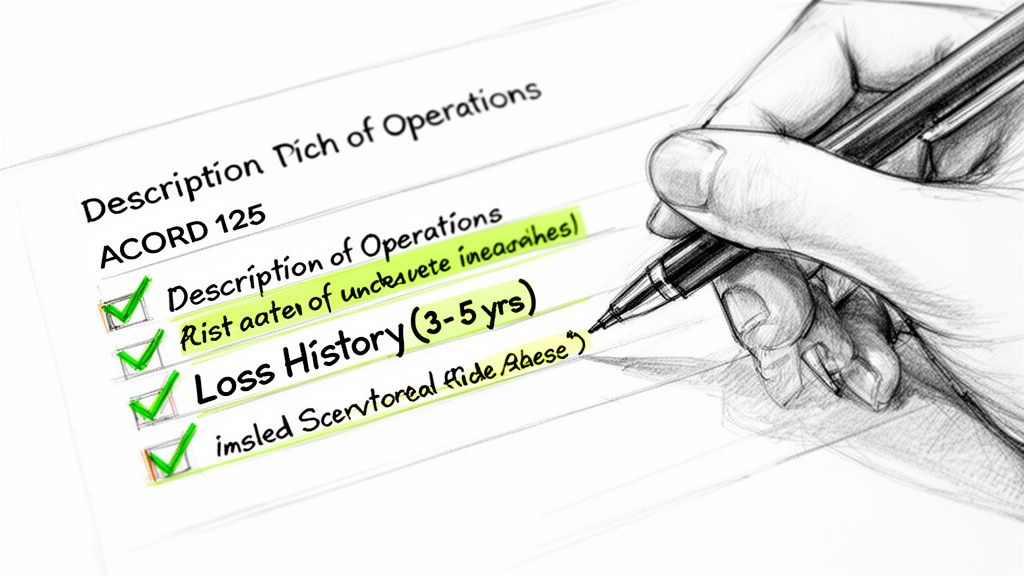 Filling out an ACORD 125 shouldn't feel like a chore. It's actually your first, best chance to tell your business's story to an underwriter. If you approach it with a clear strategy, you can turn a simple application into a powerful tool that gets you a better, faster quote. The secret is focusing on clarity, completeness, and context—especially in the sections that get the most attention.