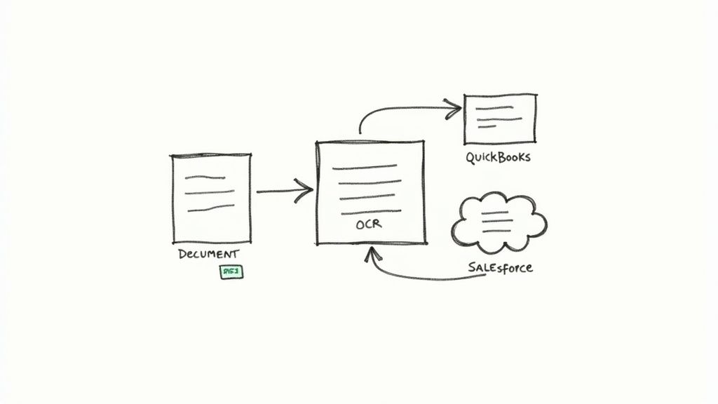 Getting clean data out of your documents is a fantastic first step, but it's not the final one. The real magic happens when that information flows directly into the software you rely on every day, like your accounting platform or CRM. This is where automation moves from being a neat trick to becoming the backbone of your operations.