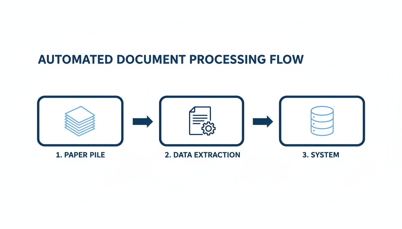 Automated document processing is a fancy term for something simple: teaching software to read and understand your business documents for you. Instead of someone manually typing information from an invoice into a spreadsheet, the software does it instantly—and without typos. This gets your team away from mind-numbing data entry and back to work that actually matters.