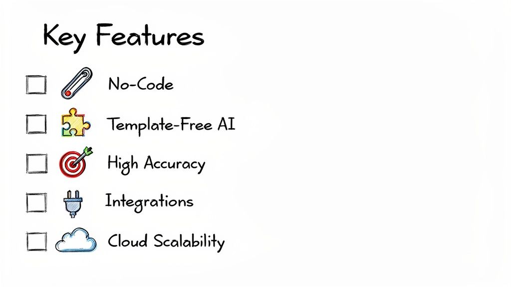 Just as critical is template-free AI. Older software forced you to build a rigid template for every single invoice layout. Imagine doing that for hundreds of different suppliers. It's a non-starter. Modern tools use AI to understand the document and find the data it needs, no matter where it is on the page.