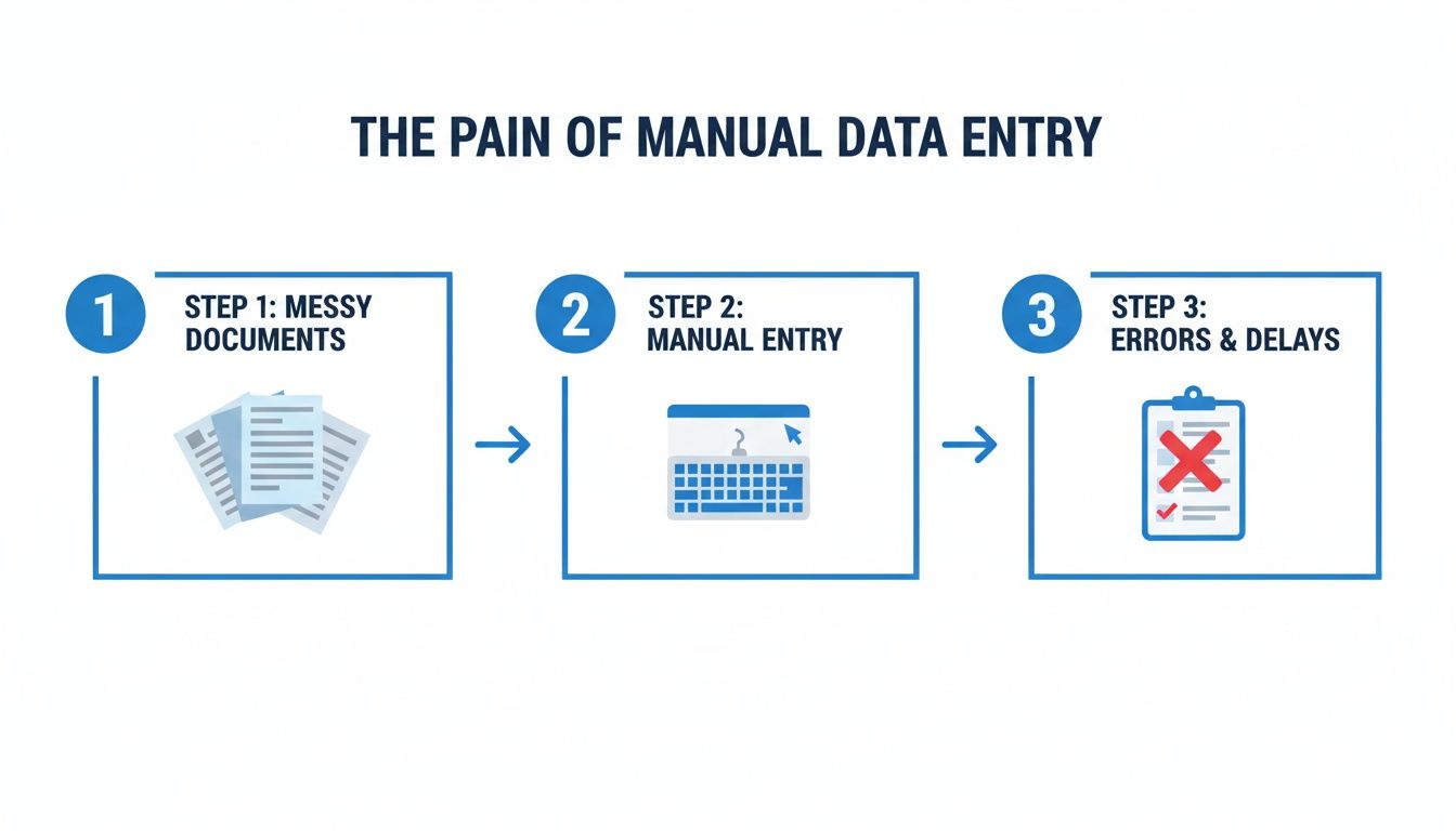 This whole process is about turning jumbled, unstructured files—like a scanned contract, a photo of a receipt, or a PDF invoice—into clean, structured data that your other business software can actually use. We've all been stuck doing this manually, and we know it's a slow, tedious grind that’s filled with opportunities for human error.
