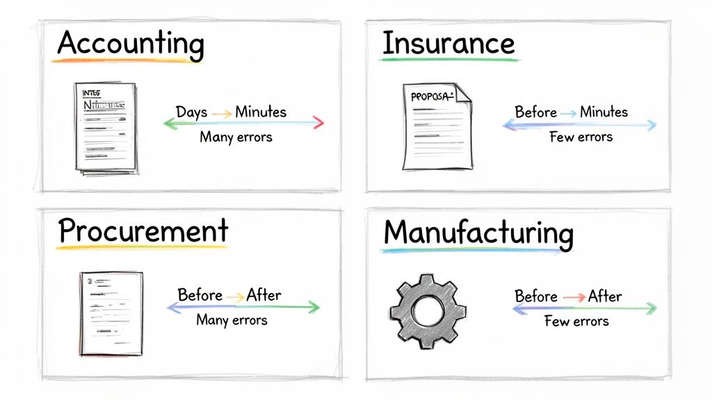 The real win isn't just about speed; it's about fundamentally changing how work gets done. Companies that make the switch see a dramatic "before and after" effect, moving away from tedious, error-filled manual tasks and toward smart, accurate, data-first operations. Let's dig into a few real-world examples.