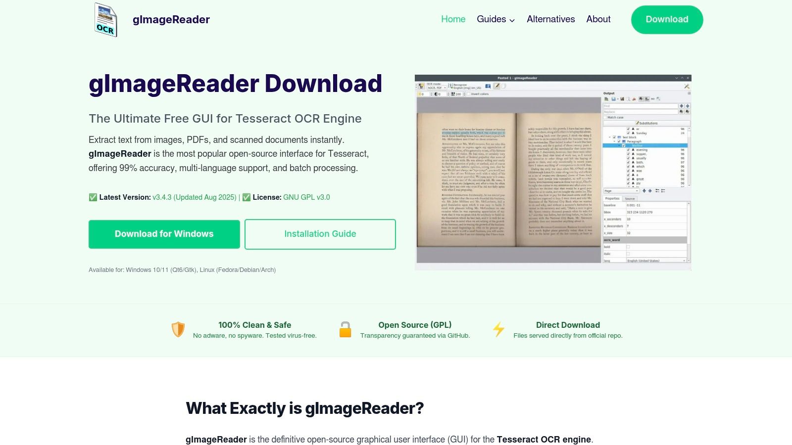 | gImageReader | GUI front‑end for Tesseract; zone OCR | ★★★ – good for ad‑hoc tasks | 💰 Free | 👥 Casual users wanting GUI OCR | ✨ Selectable zones & multiple exports |