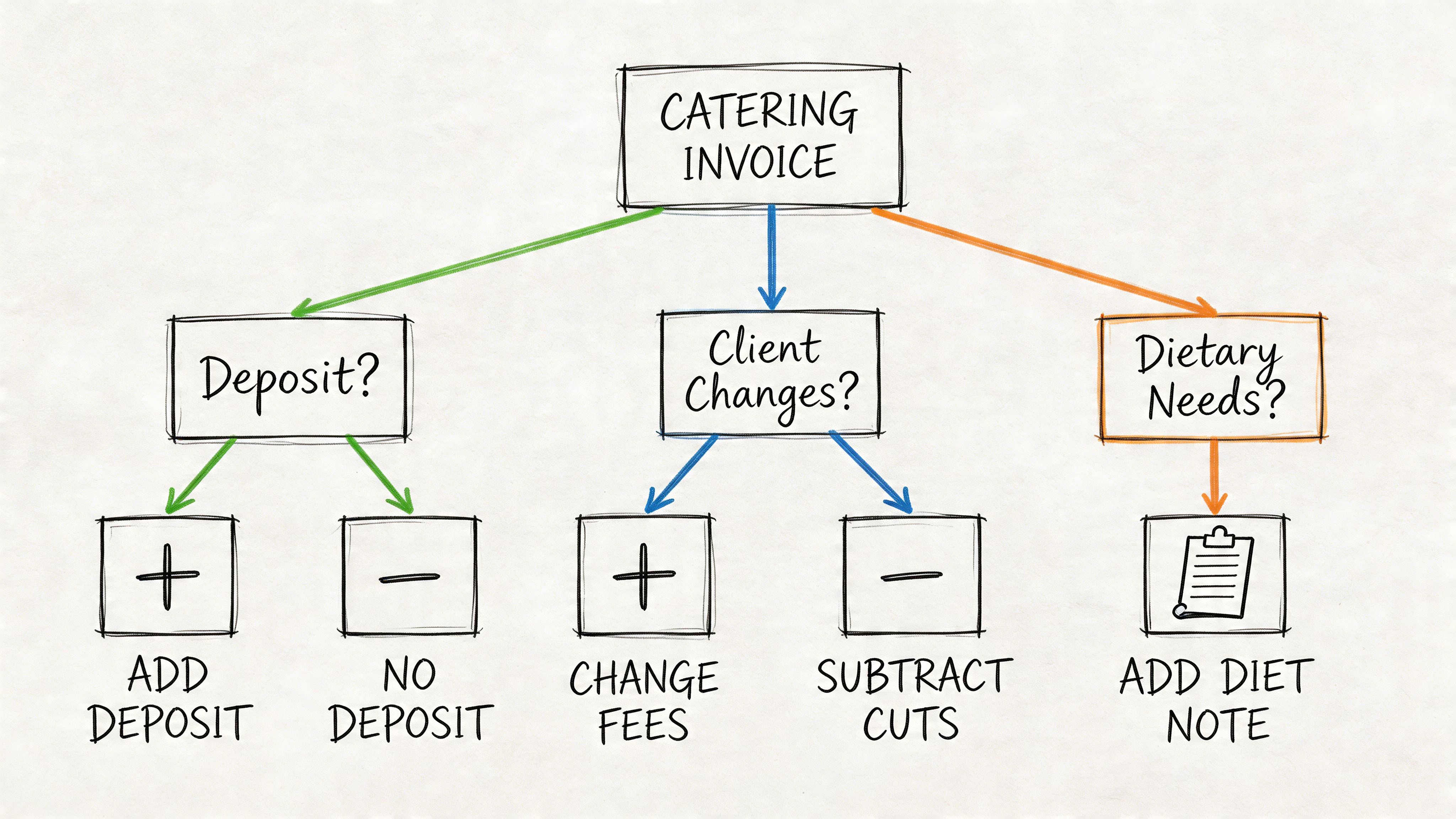 Catering invoices fall apart when real-life changes show up. The template looked perfect until the guest count moved, the venue added requirements, or the client approved one more service item the night before.