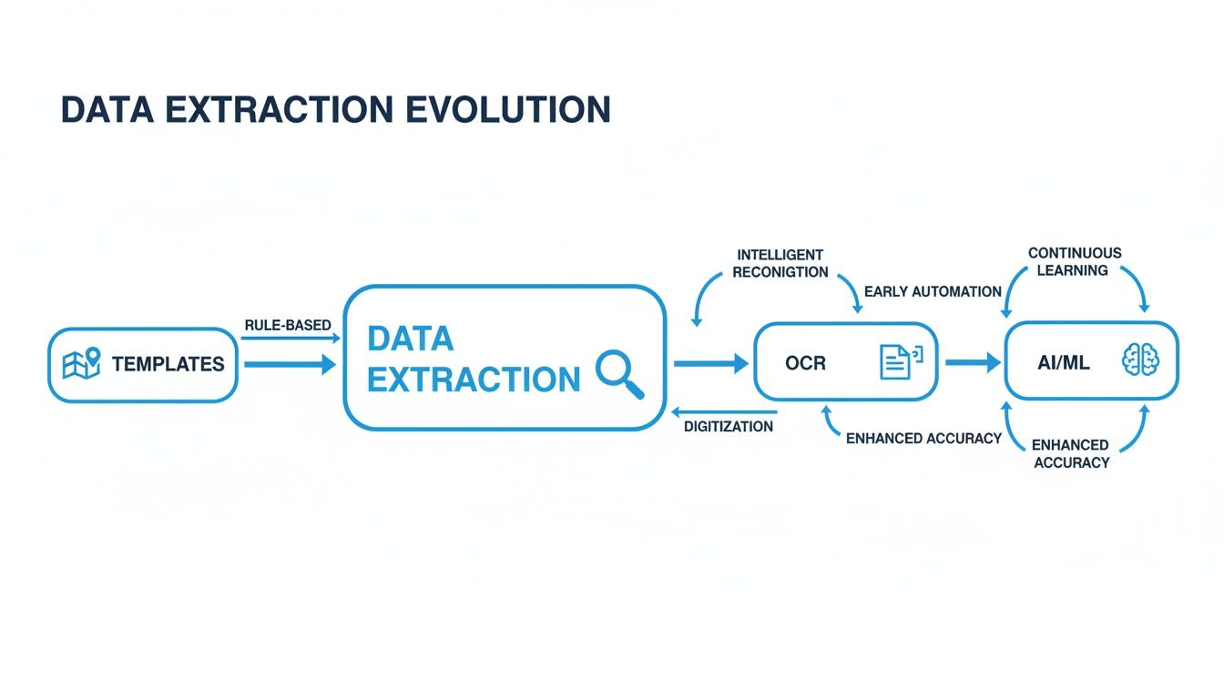 The problem? The moment a vendor changed their invoice design, even slightly, the template would break. You'd have to go back and build a whole new one. It was a brittle and time-consuming system that just couldn't keep up with the real world. To dig deeper into the basics, check out our guide on what is Optical Character Recognition.