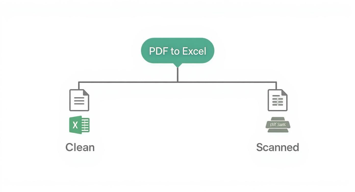 The first, most crucial step is figuring out what kind of PDF you're dealing with. Is it a "clean" digitally created file, or is it a scanned image? Your answer determines which tools will actually work.