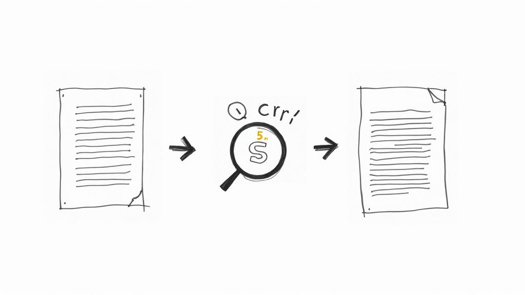 The real magic for turning scanned images into usable data is Optical Character Recognition, or OCR. This technology is essentially a digital translator. It scans the image, identifies the shapes of letters and numbers, and converts them into actual, editable text. If you're curious, you can learn more about what OCR technology is and how it works.