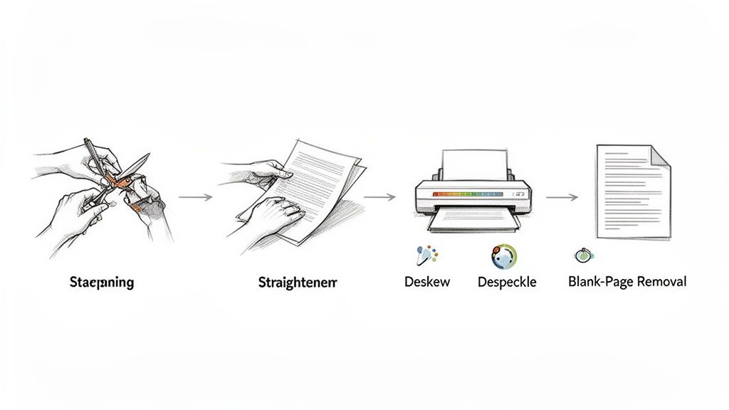 Think about it: you scan a 50-page contract that has a bunch of blank divider pages. Instead of you having to hunt them down, the software just zaps them. This same principle is vital when you need to scan documents to Excel, as a clean image is the first step to pulling accurate data into your spreadsheet. Get the preprocessing right, and your final data will be ready for action.
