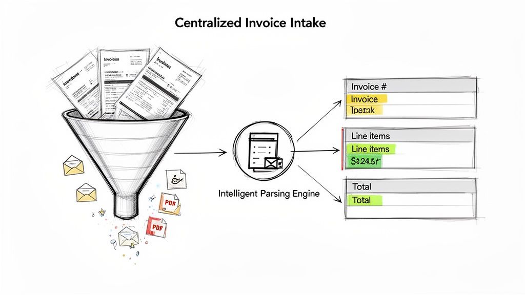 The first real win in fixing AP is to stop the chaos at the source. You need to create a single, clear path for every invoice to follow, whether it’s a PDF in an email, a piece of paper, or a submission through a portal. Funneling everything into one place stops invoices from getting buried in personal inboxes and gives you a real-time view of what's landed on your desk.