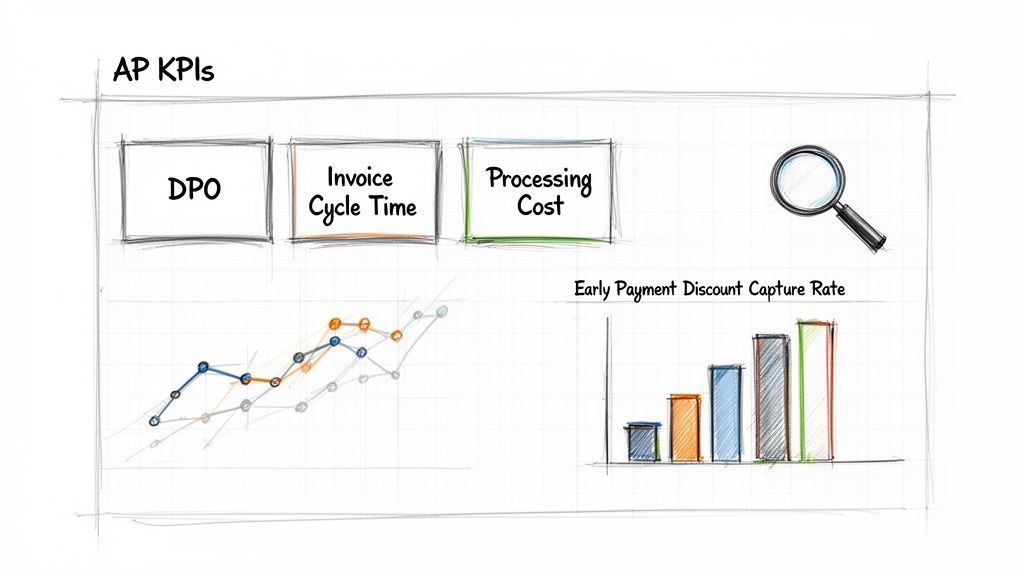 To get a real handle on performance, you need to look at specific, measurable metrics. These KPIs go way beyond just counting invoices or tracking total spend. They give you a much deeper view into the efficiency, cost, and cash flow impact of your AP operations. Think of them as the vital signs of your company’s financial health.