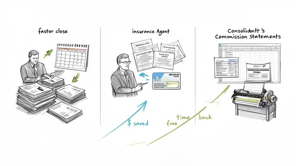 It's a similar story for manufacturers' representatives. They often have to deal with multiple partners, and each one sends a commission statement in a unique PDF format. Trying to manually reconcile all those statements to make sure you’re getting paid correctly is a tedious, frustrating job that can burn up days of valuable time.