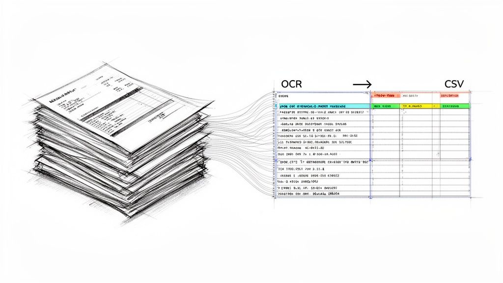 Let's be honest, staring at a mountain of PDF invoices or reports feels like a universal bottleneck. We've all been there—the mind-numbing task of copy-pasting data into a spreadsheet. It’s not just slow; it’s a massive drain on resources and a perfect recipe for costly mistakes. Switching from PDF to CSV with the right tools can completely automate this process, turning those static documents into clean, usable data in minutes.