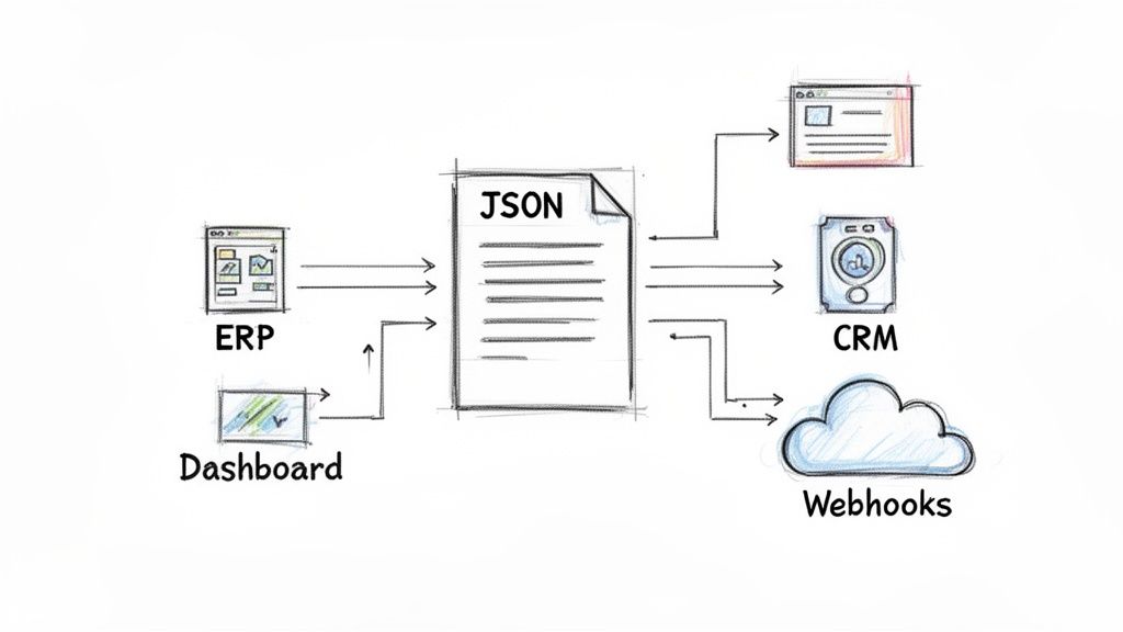 Getting your data out of a PDF and into clean JSON is a great start, but it's not the finish line. The real magic happens when you connect that structured data to the software that runs your business. This is where you go from a simple file conversion to true, hands-off automation.