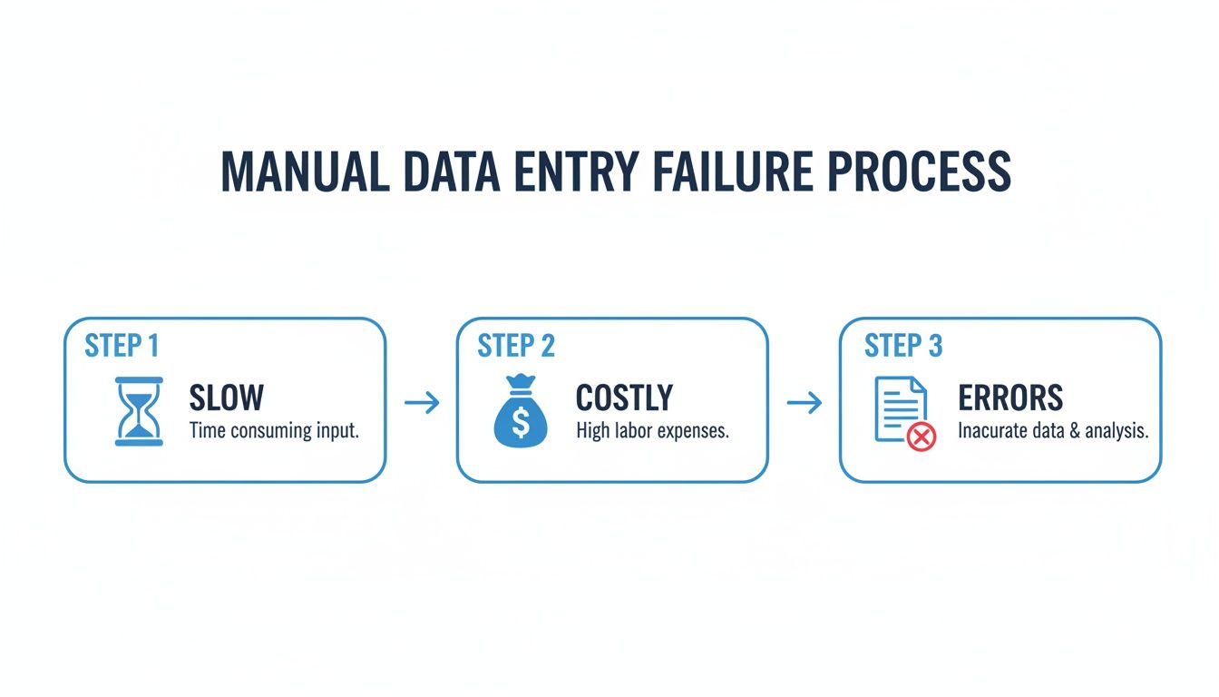 The numbers here are pretty stark. Even with the most diligent teams, traditional data entry for complex documents like multi-page invoices or scanned bank statements rarely breaks 80-85% accuracy. That gap forces managers to spend hours on manual verification, and in high-volume departments, error rates can climb as high as 15-20%.
