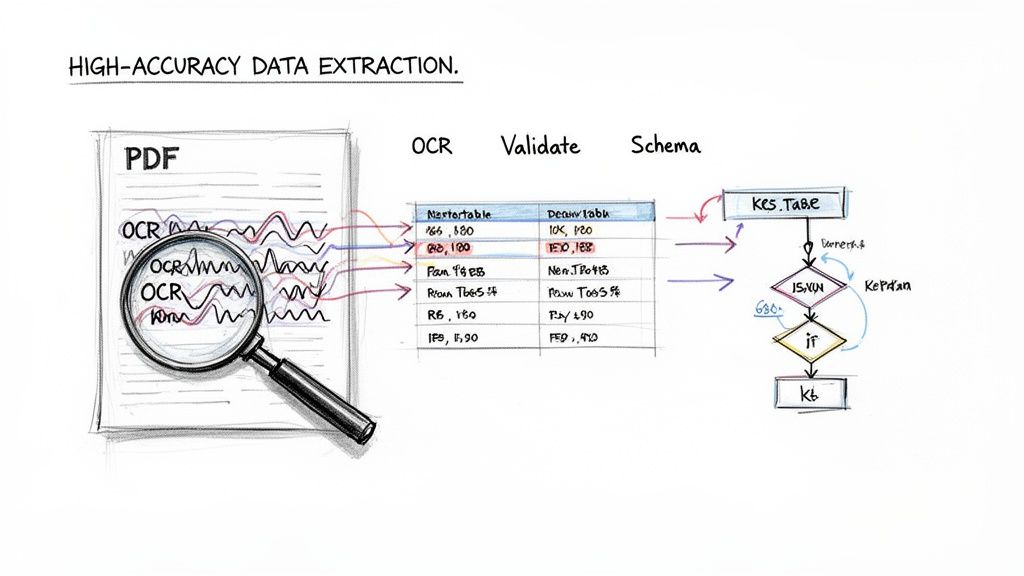 The real magic happens when you combine OCR, intelligent table extraction, and schema mapping into a single workflow. You can take a messy, unstructured PDF and get a clean, predictable, and immediately usable JSON object out the other side. This is a complete game-changer for anyone in loan processing, procurement, or logistics.