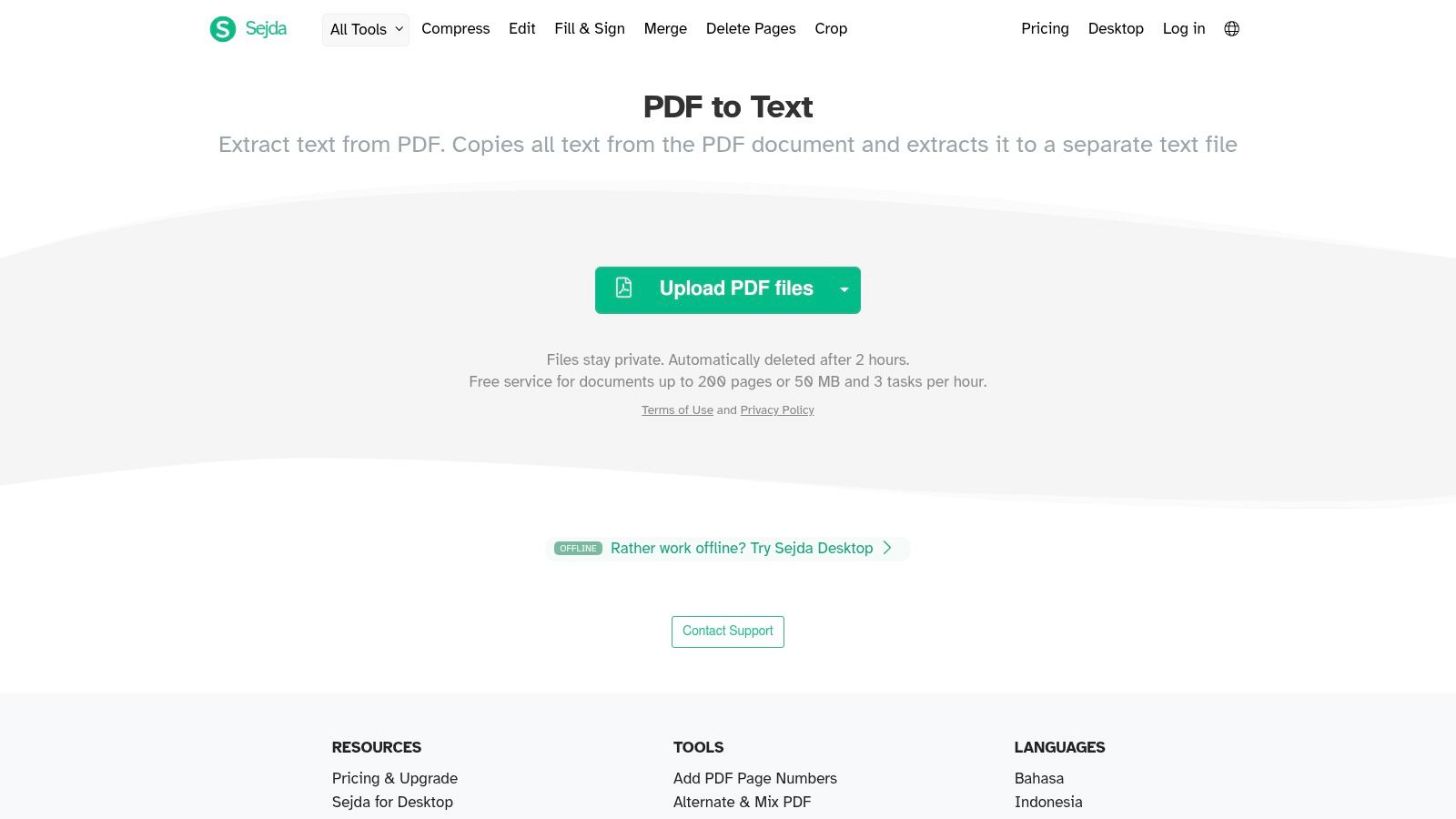 Sejda offers a suite of PDF tools, including a dedicated and straightforward online pdf to text converter. Its main advantage is simplicity and directness. Unlike platforms that push users toward Word or Excel conversions, Sejda provides an "Extract text from PDF" tool that outputs a clean, plain text (.txt) file with minimal fuss. This makes it an excellent choice for users who need raw text for data processing or simply want to copy content without formatting.