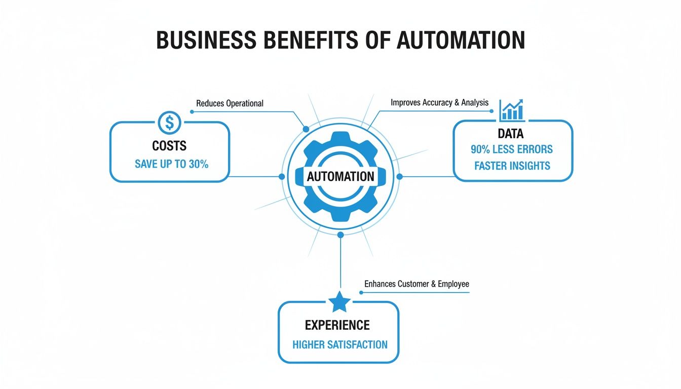 This diagram breaks down the core wins from automation, showing how it boosts your bottom line, sharpens your data, and improves the experience for everyone involved.