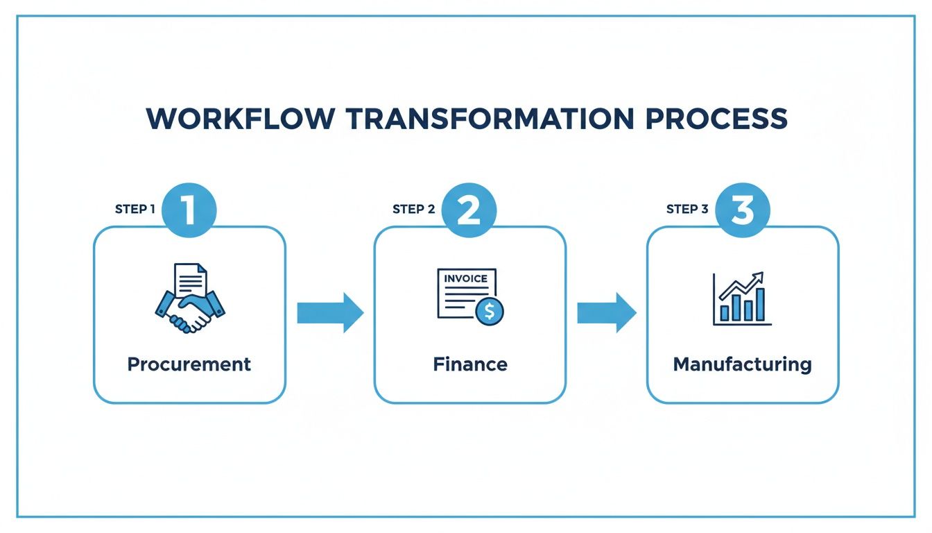 Let’s get practical and look at how this plays out in the real world. We'll explore how automation tackles the common, expensive headaches that plague procurement, finance, and manufacturing teams every day. While each department has its own unique frustrations, the solution usually boils down to a single, powerful idea: let smart technology handle the tedious, repetitive stuff.