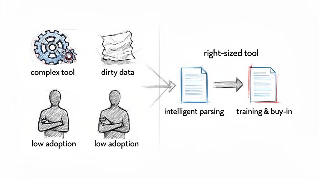This complexity is the direct cause of low user adoption. When a tool is a nightmare to use, people will do what they’ve always done: find a workaround. They'll go right back to their old spreadsheets and manual habits, and your big investment will just sit there collecting dust.