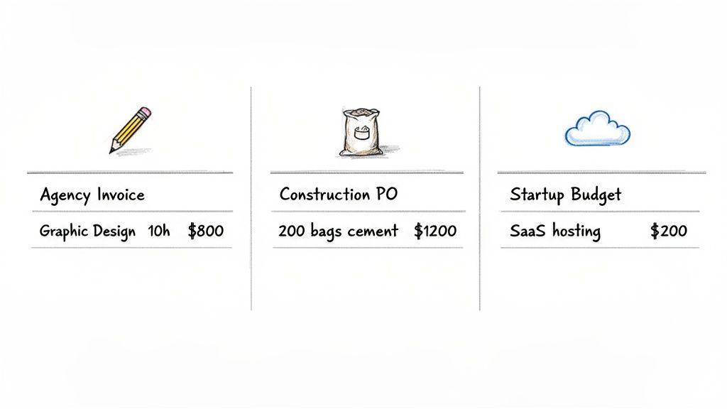 The idea of a “line item” isn’t just some stuffy accounting term; it’s a concept you see in action every single day, no matter the industry. Looking at how they work in different situations is the best way to connect the dots between theory and practice.