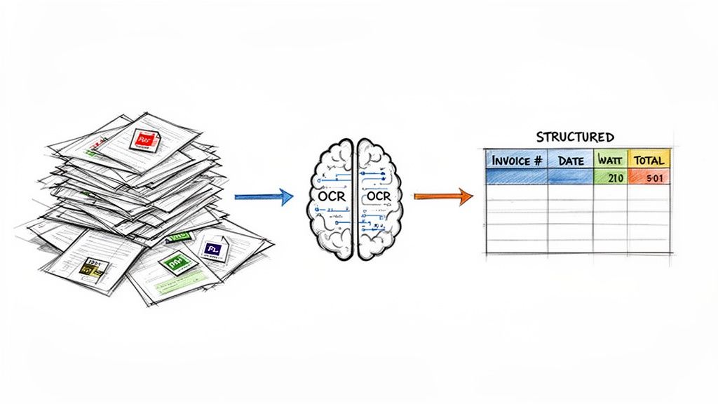 Let's look at a real-world scenario: an accounting team staring down a month-end close. They're sitting on thousands of invoices from different vendors, and every single one has a unique layout. In the past, this meant hours upon hours of manual data entry.